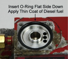 Insert the special 0-ring flat side down. Lightly coat the o-ring in diesel fuel before installing.